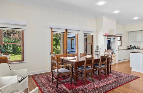 Featuring charmingly classical interiors, this elevated property offers modern spins on rural and country aesthetics. Featuring its original design, this incredible property offers a beautiful wrap-around deck with outdoor seating overlooking the lush garden. Nestled among the Southern Highland's rolling hills, this pristine property offers the perfect escape for groups or families.