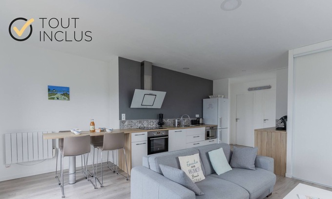 Discover the comfort and charm of the "ENEZ CARN" flat, nestled within the wooden house "Les Gîtes de Roscaroc". This new residence, steeped in character, has been carefully converted into three separate flats, offering its residents privacy and tranquillity, while still being just 300m from the beach.