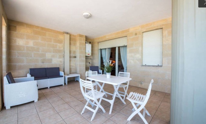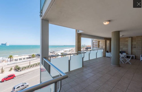 Beautiful apartment overlooking the sea. With veranda of 70 square meters facing the sea and the availability of a common parking. L 'apartment' newly built modern, with a large bedroom, living room with a sofa bed and dining room, kitchen, two large bathrooms has a closet. Fully furnished apartment is equipped with all comforts like conditioned area, heating, washing machine, drying rack, iron, linen and wifi. Even the kitchen is' equipped. Beautiful sea view with all the facilities in the area, restaurants, rotisseries, pizzerias, supermarkets and just a few minutes drive from the center of Bari's old town. easily accessible area and the possibility of easy movements also for sightseeing in areas near Bari.