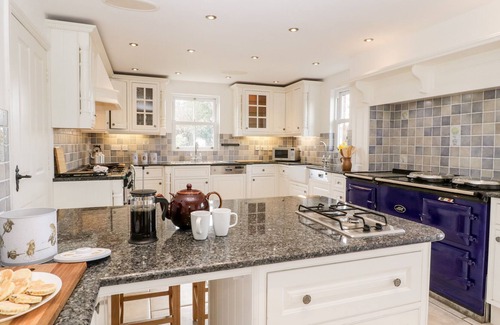 Amenities: Oil underfloor heating. Electric oven, gas hob, two-ring integrated hob, AGA, fridge, freezer, washing machine, 2 x dishwashers. Fuel, power and starter pack for woodburning stove inc. in rent. Bed linen and towels inc. in rent. Off-road parking for 5 cars. Rear patio with furniture and brook. Lockable shed for bike storage. Two well behaved dogs welcome. No smoking. Shop 0.5 miles, pub 0.1 miles. Note: Rose Cottage is not recommended for young children due to the garden with open access to the brook.