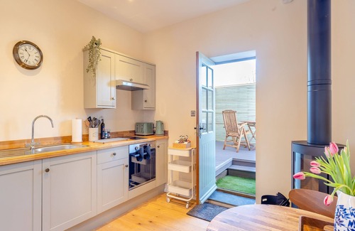 With a hot tub, underfloor heating and wood-burning stove, this cosy retreat makes a perfect base for couples no matter what time of year.. 1 step to entrance.