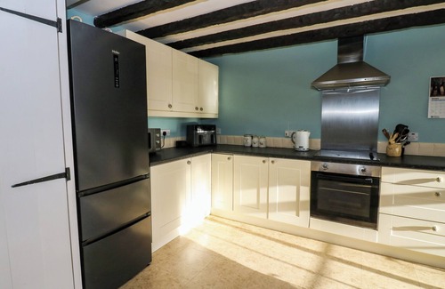 Amenities: Oil central heating. Electric oven and hob, microwave, fridge/freezer, washing machine, dishwasher. Smart TV, WiFi. Fuel, power, and starter pack for woodburning stove inc. in rent. Bed linen and towels inc. in rent. Roadside parking available. Small rear patio area. 2 well-behaved pets welcome. Sorry, no smoking. Shop 0.1 miles, pub 0.1 miles, river 0.1 miles. Note: Boot room has secure bike storage