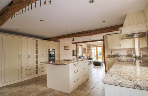 Rose Hips Barn is a splendid barn conversion nestled in the Lancashire countryside near the village of Wheelton and the market town of Chorley. It comprises four bedrooms; a king-size double, a double with en-suite shower room, a twin with en-suite walk-in shower and a king-size double with en-suite shower room, sleeping eight guests altogether. There is also a bathroom with a roll-top bath and walk-in shower, an open-plan living room with kitchen, breakfast bar, dining area and sitting area, utility/cloakroom, dining room and sitting room. Outside is ample off-road parking and a garden with lawned area, gravelled area and patio. Rose Hips Barn is a stunning retreat to be enjoyed the year-round.