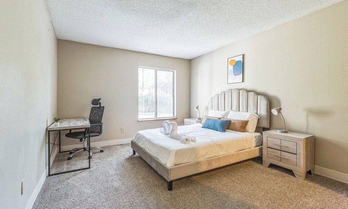 This beautifully furnished 1 bedroom apartment is designed for comfort, convenience, and style. From cozy bedding to a fully stocked kitchen, every detail has been thoughtfully curated to make your stay effortless. Enjoy high-speed Wi-Fi, a smart TV, plush living room seating, and a workspace ideal for remote work or study.