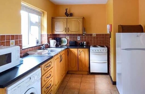 Amenities: Electric heating with woodburner. Electric oven and hob, microwave, fridge/freezer, washer/dryer, TV with Saorview, CD/radio. Fuel and power to be charged via 2 coin meter. Starter pack for stove inc. in rent. Bed linen and towels inc. in rent. Travel cot and highchair. Off road parking for 2 cars. Garden and patio with furniture. One well-behaved dog welcome. Sorry, no smoking. Shop 1.2 miles, pub 2 mins walk. Note: This property is on the same site as Property Reference 950536 and together they sleep 14