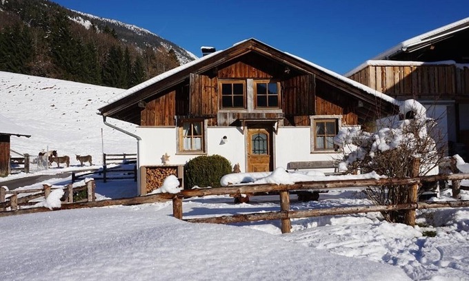 The cozy Roßweid Hütte is situated in an idyllic and peaceful panoramic location in picturesque Stans in Tyrol, not far from the famous Wolfsklamm gorge and the pilgrimage site of St. Georgenberg with its impressive rock monastery. Surrounded by chickens, rabbits, goats and horses on the landlords' farm, the hut promises an unforgettable nature experience. The hosts on site are extremely eager and friendly to make your stay as pleasant as possible. The alpaca hikes, which take you through the beautiful landscape, are particularly recommended.Stans, nestled in the Karwendel Silver Region, offers numerous breathtaking hikes in summer as well as a variety of winter sports in winter. The hut is located away from civilization, perfect for a digital detox - here you can enjoy the peace and quiet and untouched nature. The breathtaking view of St. Georgenberg rounds off the experience and makes your stay a true retreat.The Roßweid Hütte offers space for up to four people and has been renovated with great attention to detail by the owners. The original charm of the hut has been preserved, while at the same time modern comforts have been created for a carefree stay.The living and dining area is comfortably furnished and offers everything you need for a pleasant stay. Two cozy sleeping areas under the roof, which can be reached via a small ladder, exude a special, rustic charm. There is also a cozy bedroom with a double bed that can accommodate two more guests. The bathroom rounds off the feel-good features of this charming hut.The fenced garden invites you to relax and linger - whether with family or friends. The fire pit is particularly magical in the evening, complemented by a barbecue grill and the cozy logs that make the campfire experience perfect. Here, the day's mountain adventures can come to an end in a cozy atmosphere.The Roßweid Hütte is the ideal retreat for anyone looking for relaxation and adventure in the midst of Tyrolean nature. A real gem for nature lovers and families!