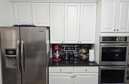 Stay comfortably in Roswell at this 5-bedroom house. With 3 king beds, 1 twin bed, and 1 queen bed, this property is perfect for large groups or families. Enjoy the serene atmosphere and modern amenities like WiFi, AC, and a jetted bathtub. The welcoming living room with an additional queen bed offers extra space for relaxation. Feel free to reach out to us during your stay - we're happy to suggest local spots to check out.