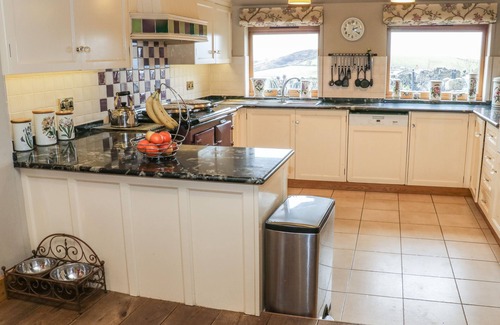 Amenities: Electric underfloor heating with woodburning stove. AGA, electric oven, fridge, freezer, dishwasher, washing machine, tumble dryer, 2 x TV and WiFi. Fuel and power inc. in rent. Bed linen and towels inc. in rent. 3 travel cots (please bring own cot bedding) and 3 highchairs, 1 baby bouncer also available on request. Ample off-road parking. Front terrace garden with table and chairs, as well as rear garden with large lawn areas, two patios areas with seating, barbeque hut and sheltered hot tub. Two well behaved pets welcome. Shower seat and zimmer frame are available on request. Two dog crates on request (500cm height by 500cm width by 800cm depth), dog bowls and dog beds in various sizes provided. EV charger available, charges apply. Sorry, no smoking allowed. Shop 1.2 miles, pub 0.6 miles. Please note this property cannot accept check-ins on a Sunday or bookings that depart on a Saturday