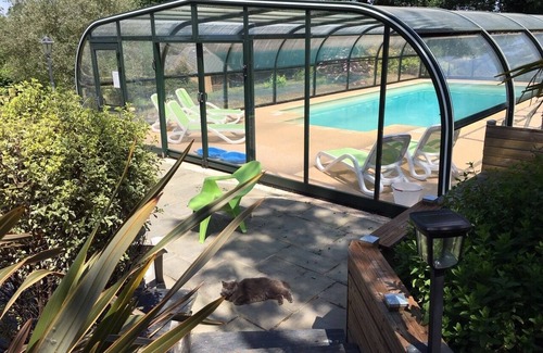 No, this Talensac cottage does not have a swimming pool. Check the Facility Overview section for details about the pool and other available facilities.
