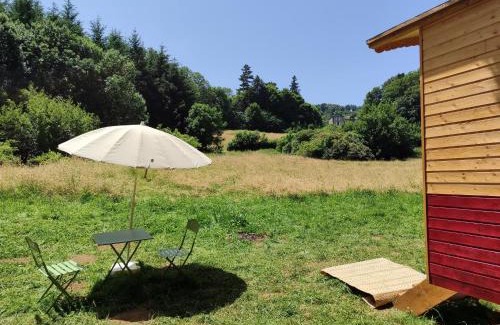 Roulotte au pied des volcans, cuisine et sdb de plein air is located in Orcines.