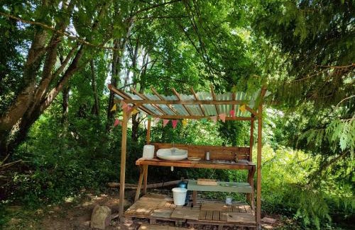 Roulotte au pied des volcans, cuisine et sdb de plein air is located in Orcines, just 7.6 miles from Polydome Congress Centre and 7.9 miles from Clermont-Ferrand Train Station. With free private parking, the property is 4.6 miles from Vulcania and 7.2 miles from Clermont-Ferrand Cathedral. Zénith d'Auvergne is 13 miles away and Puy de Sancy Mountain is 29 miles from the campground. Guests can enjoy a meal on an outdoor dining area while overlooking the mountain views. The accommodation is non-smoking. Guests can also relax in the garden. Blaise Pascal University is 9.3 miles from the campground, while La Grande Halle is 13 miles away. Clermont-Ferrand Auvergne Airport is 12 miles from the property.