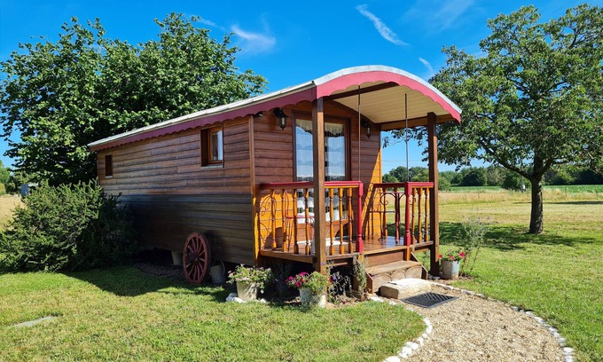 Roulotte Esmeralda: Unique stay in nature, air-conditioned, private parking, bike rental | Bed & Breakfast in Bonnée