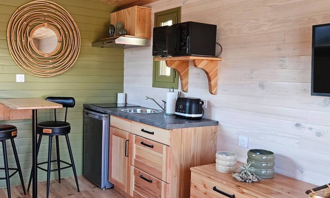 Best-rates for the Roulotte ESMERALDA with SPA starts from $192 per night with includes Wellness Facilities, Fireplace/Heating, Hot Tub, Internet, Air Conditioner, TV, Kitchen, Parking, Pool, Balcony/Terrace, Security/Safety with all other amenities. Perfect for Weddings is committed to ensuring every guest experiences a comfortable and extraordinary stay, whether planning a romantic getaway, a honeymoon, a pet-friendly stay, or celebrating with the entire wedding party.