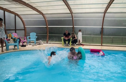 Yes, this Roulotte Gîte 5 persons has a swimming pool. Check the Facility Overview section for details about the pool and other available facilities.