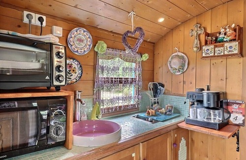 Best-rates for the Roulotte La Comtesse Gitane starts from $79 per night with includes Pet Friendly, TV, Balcony/Terrace, Barbecue/Outdoor Cooking, Child Friendly, Hot Tub, Parking, Security/Safety, Bedding/Linens, Wellness Facilities, Fireplace/Heating, Kitchen with all other amenities. Perfect for Weddings is committed to ensuring every guest experiences a comfortable and extraordinary stay, whether planning a romantic getaway, a honeymoon, a pet-friendly stay, or celebrating with the entire wedding party.