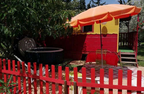 Roulotte La Pitchoune is located in Tarascon. Roulotte La Pitchoune provides accommodation, featuring Parking, Internet, TV, among other amenities. This Cabin features Parking, Internet, TV, to make your stay a comfortable one.