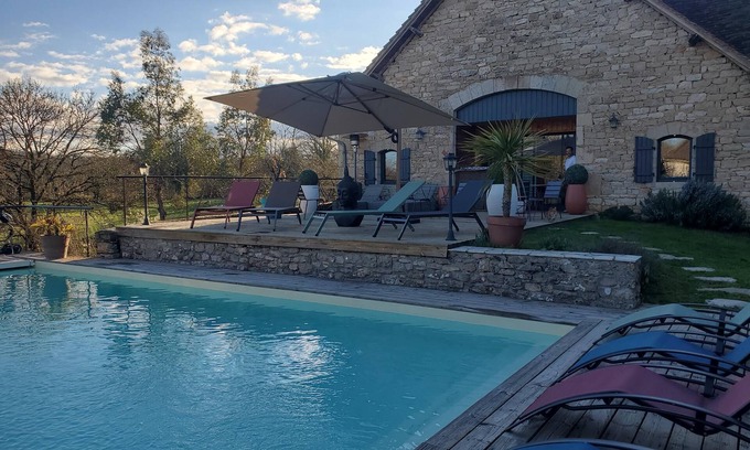 Best-rates for the Padirac house starts from $212 per night with includes Internet, Laundry, Pool, Balcony/Terrace, Bedding/Linens, Guest Services, Breakfast, Barbecue/Outdoor Cooking, Child Friendly, Kitchen, Parking, Other, Designated Smoking Area, Spa with all other amenities. Perfect for Weddings is committed to ensuring every guest experiences a comfortable and extraordinary stay, whether planning a romantic getaway, a honeymoon, a pet-friendly stay, or celebrating with the entire wedding party.