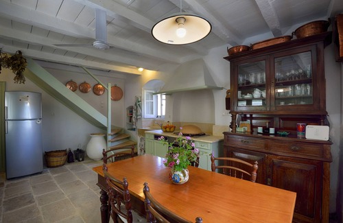 The apartment has just been fully refurbished, with loving respect to the origins of the house.The kitchen is fully equipped to the higest standard with a brand new fridge (stocked with homemade jam, fresh eggs, butter and cheese) kitchen and dishwasher and both bedrooms are air-conditioned. The house has tv and wifi access. (Coffee and tea are also provided!)