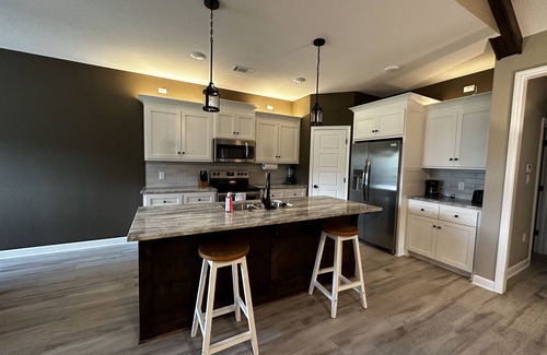Completed in February 2023, this home was built specifically for VRBO. It is one of my many rent by the night furnished properties and I am very proud to offer it for your enjoyment. Only 2 minutes from I-40, it provides easy access to Conway shopping or to Little Rock where you can enjoy our State Capitol. It includes a bunk house style bedroom upstairs over the garage with 2 full sized beds to give room for children or co-workers. The home is fully furnished and ready for you. Enjoy!