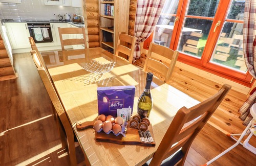 Amenities: Underfloor heating. Electric oven, induction hob, microwave, fridge freezer, dishwasher, washing machine, 2 x TVs, DVD player, radio, WiFi. Fuel and power inc. in rent. Bed linen and towels inc. in rent. Cot and highchair available on request. Off-road parking available. Enclosed garden with hot tub, outdoor furniture, barbecue and sun loungers. Sorry, no pets and no smoking. Shop and pub 1.2 miles. Note: This lodge is on one level with an instep in each door way of 3.5 cm, ramps are available upon request. Note: No stag/hen or similar. Note: Sofa bed in sitting room can sleep children and is not suitable for adults. Please Note: This owner cannot accept a Saturday and Sunday check in at the property. The shared swimming pool can be booked for private use a week in advance for half an hour slots ( per property ) , subject to availability, the first half hour is free, and additional half hour slots are charged at £16 for the use of the pool