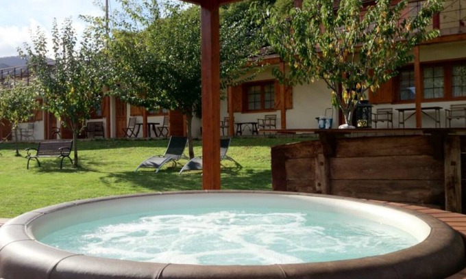 Studio of 36 m². Fully equipped. 1.50 m bed. 1.35 m sofa bed. 32 "TV. Full kitchen. Washing machine, ceramic hob. Fridge, microwave, dishwasher. Whirlpool. Peles stove. Private outdoor parking. 500 m2 of meadow and pomarada. Surrounded by chestnut forest. Barbecue. Wifi. Ground floor, exit to the Garden, beautiful views, outdoor Jacuzzi, capacity for 2 or 4 people