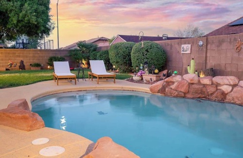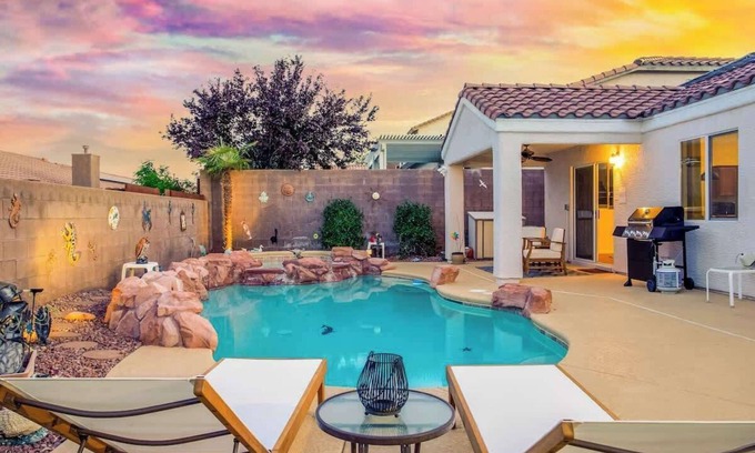 Looking for the perfect home to accommodate your group? Look no further; our sunny oasis awaits! Our spacious home, nestled in the Henderson neighborhood just outside Las Vegas, is the perfect group getaway.