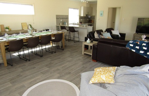 Open plan kitchen with dishwasher, fridge/freezer, electric oven/stove top, microwave, kettle, toaster, Nespresso coffee pod machine (BYO pods), toastie machine, rice cooker, pura tap, slow cooker, butlers pantry. Dining with large dining table, stereo - blue tooth, lounge with large smart TV, Blue Ray player, reverse cycle split system air-conditioner, 2 1/2 seater lounge plus 2 seater lounge, bean bag area - book case with small selection of puzzles and books.