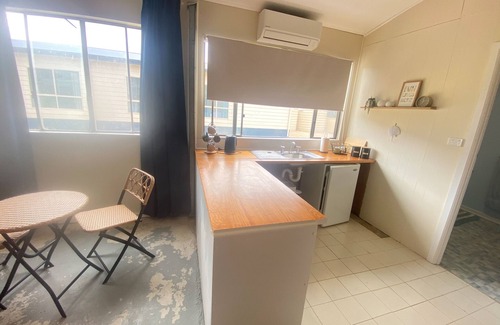 The shed has been transformed into a separate living space, kitchenette with tea/coffee making facilities, bar fridge, sink, small round table and 2 chairs, split system reverse cycle air-conditioner, lounge area with 2 lounges, coffee table, combustion heater (BYO wood).