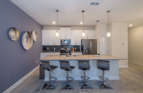 Gorgeous Brand New 4 Bedrooms, 3 Bathrooms Vacation Rental with Pool. Located in Storey Lake Resort, will ensure you have an amazing vacation. The bedrooms consist of one King bedroom downstairs, one King suite, one bedrooms with a full & twin beds, one bedroom with a bunk bed twin over full and a trundle twin bed. Closest community from Disney, Disney Springs, Malls, Walmart. Clubhouse Resort with great amenities, Two Pools including a lazy river, restaurant, gym and more.