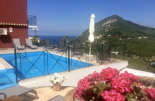 Located on the secluded hill overlooking the Ermones bay, the complex offers a stunning panoramic view of the sea, mountains and a valley. The location is quiet and beautiful. It is situated on the west side of the island 100 m above the level of the sea. The closest beach is less than 1 km. There you can find some Greek taverns where you can enjoy your food with the glass of wine breathing in the fresh sea air.