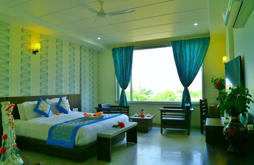 Best-rates for the Rubystone Shiv Vilas Palace starts from $58 per night with includes Restaurant, Air Conditioner, Balcony/Terrace, Bedding/Linens, Breakfast, Parking, Designated Smoking Area, Entertainment, Kitchen, Laundry, Pool, Wheelchair Accessible, Business Services, Wellness Facilities, Fireplace/Heating, Guest Services, Child Friendly, Internet, TV, Accessibility, Toiletries with all other amenities. Perfect for Weddings is committed to ensuring every guest experiences a comfortable and extraordinary stay, whether planning a romantic getaway, a honeymoon, a pet-friendly stay, or celebrating with the entire wedding party.