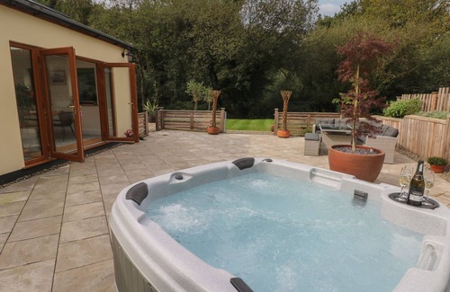 Amenities: Electric air source and underfloor heating. Electric oven and grill, induction hob, microwave, fridge/freezer, wine cooler, washing machine, tumble dryer, dishwasher, coffee machine. 2 x Smart TVs with SKY, Fibre WiFi. Fuel and power inc. in rent. Bed linen and towels inc. in rent. Highchair, travel cot and stairgate available. Off-road parking for 5 cars. Landscaped, enclosed, rear garden, with patio, furniture and hot tub. Two well-behaved dogs welcome. Sorry, no smoking. Shop 3.2 miles, pub 1.1 miles. Note: There is a stream in the front garden, please ensure dogs and children are supervised; this lies outside the secure garden area
