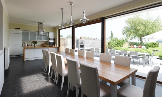 Offering a garden, Rue du Canal offers accommodations in Alveringem. Both free Wifi and parking on-site are available at the vacation home free of charge. On clear days, guests can head outside to enjoy the vacation home's outdoor fireplace or simply kick back and relax. Providing a terrace and garden views, the spacious vacation home includes 6 bedrooms, a living room, cable flat-screen TV, an equipped kitchen, and 3 bathrooms with a bath and a shower. Towels and bed linen are provided in the vacation home. For added privacy, the accommodation has a private entrance and soundproofing. Guests can make the most of the warm weather with the property's barbecue facilities. The area is popular for cycling and hiking, and bike rental is available at this 4-star vacation home. In addition to a seasonal outdoor pool, Rue du Canal also provides an indoor play area. The Menin Gate is 15 miles from the accommodation, while Plopsaland De Panne is 16 miles from the property. Ostend - Bruges International Airport is 26 miles away, and the property offers a paid airport shuttle service.