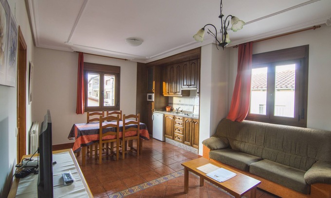 The apartment B1 has two double bedrooms, two bathrooms, living room with TV 32 ", equipped kitchen, free wifi, air conditioning in all rooms and heating.