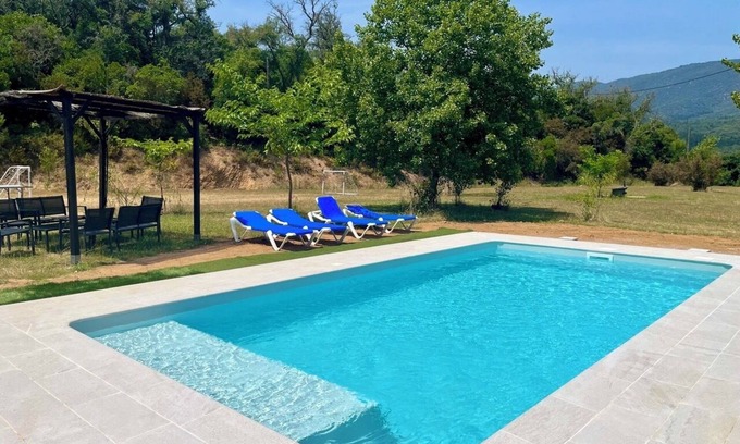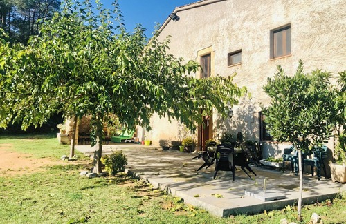 The house is located on a flat property of 10,000 m2 completely surrounded by forest, 5 minutes by car from Santa Coloma de Farners. It has a rustic swimming pool with sunbeds, fúbol goalposts and different relaxation areas abroad.