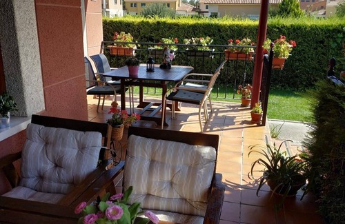 It has a wooden porch-terrace, south facing and a private interior garage.