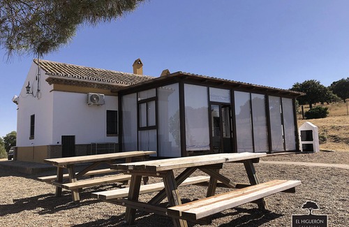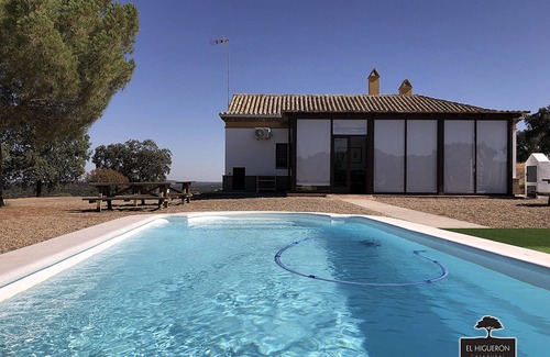 The rural house "EL HIGUERÓN" is located on the farm "El Pimpollar". This farm has more than 300 hectares of Mediterranean forest and is located in the municipality of Castilblanco de los Arroyos, near the Sierra Norte Natural Park in Seville.