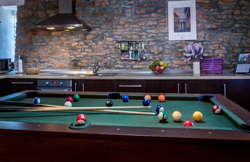 Discover a serene rural retreat nestled in Bogatic, this spacious 110 m² holiday home offers a perfect escape for up to 8 guests. The property boasts a private swimming pool measuring 6x3m, providing an ideal spot for relaxation and enjoyment.The house features three well-appointed bedrooms with a comfortable sleeping arrangement: two king-size beds, two individual beds, and in the living room a double sofa bed. Two bathrooms ensure convenience, with one featuring a shower and the other a bathtub. Modern amenities include air conditioning, WiFi, and a fully equipped kitchen with induction cooking, complete with appliances like a dishwasher, oven, microwave, and coffee machine.Outdoor enthusiasts will appreciate the private garden, barbecue area, balcony, and terrace. The property offers garden furniture and a picnic area, perfect for al fresco dining. While events are not permitted, guests can enjoy the tranquil rural surroundings and stunning pool and garden views.Conveniently located, the house is near several attractions. Skradin is 32 km away, with a local market just 11 km distant. Nature lovers will appreciate proximity to Krka National Park and the Krka River, both approximately 36 km away. Zadar Airport is about 87 km from the property, and a hospital in Šibenik is within 45 km.Parking is free and available on site.WiFi and Air conditioning are free of charge.Smoking is not allowed in the house, only outside.Pets are not allowed.Baby cot is free of charge upon request. There is also billiards, sauna, some fitness equipment, small football field, bowling, swimming pool, pool towels, deck chairs, parasols, BBQ facilities, outdoor furniture, yard.There is outdoor pool 18 m2 and 1,5 m depth.