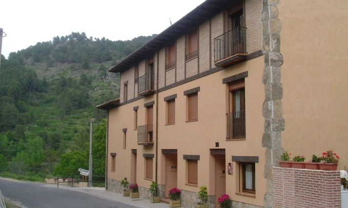 Casa Candi, has 3 double rooms and one quadruple, all with individual bathroom. It also has a fully equipped kitchen. Living room with fireplace and 2 terraces, one of them with barbecue. It is surrounded by pine, oak, chestnut and cherry forests, in a high mountain landscape overlooking the Mira and the Galayos. Ideal to rest and perform all kinds of activities, such as hiking, climbing, cycling, horse riding, canoeing. It is 150 meters from the Arenal River and its beautiful natural ponds.