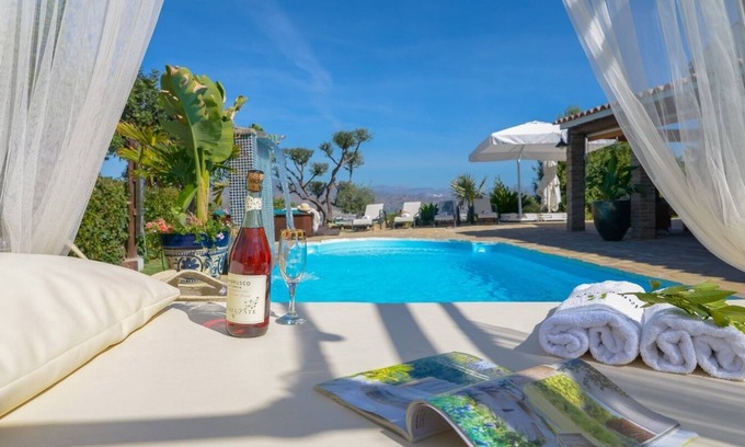 Best-rates for the Cartama villa starts from $1,155 per night with includes Air Conditioner, Parking, TV, Private Pool, Wellness Facilities, Fireplace/Heating, Entertainment, Hot Tub, Pool, Barbecue/Outdoor Cooking, Laundry, Balcony/Terrace, Security/Safety, Bedding/Linens, Child Friendly, Internet, Kitchen with all other amenities. Perfect for Weddings is committed to ensuring every guest experiences a comfortable and extraordinary stay, whether planning a romantic getaway, a honeymoon, a pet-friendly stay, or celebrating with the entire wedding party.