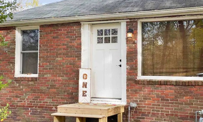 Simply take the short staircase to enter the humble abode one-level ranch home. The home offers an open floor layout between the kitchen and living room and two private bedrooms and one private bathroom. The bathroom is attached to the living area for ease of use by all guests.