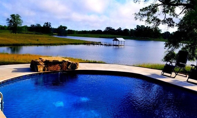 Private cabin with fabulous view. Swimming pool, onsite event barn, and fishing lake make your stay amazing. 3 queen bedrooms with baths and a sleeping loft with 6 twin beds mean that there is plenty of room for your family to stay. A great place to relax and enjoy yourself. The farm has over 200 acres of pristine beauty. Sit on the porch and watch the cows graze in the nearby green pastures. Drink coffee while you swing and relax. Step away from city lights and enjoy the stars with no light pollution. You are guaranteed to feel like you are stepping back in time to a better place.