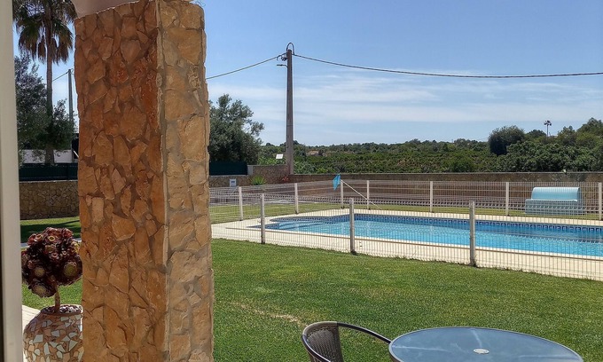 Villa with license place with 2 BBQ, sun loungers and outdoor seating and air conditioning near the Algarve beautiful beaches. The” Mesa villa” is a great country house, with spectacular views, with great refinement and rustic features, is composed of two house(t2 + t2)for holidays.It has a large swimming pool with (salt treatment) it has 5m wide and 10m long, which is excellent for children or ancient people. The villa is situated in the center of the Algarve 2 km from Algoz, is set in a farmhouse with 2 citrus HA where you can enjoy a juicy Algarve orange or other season fruit.