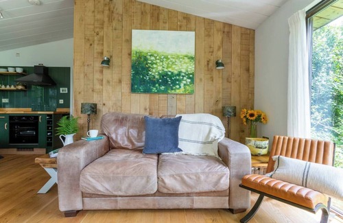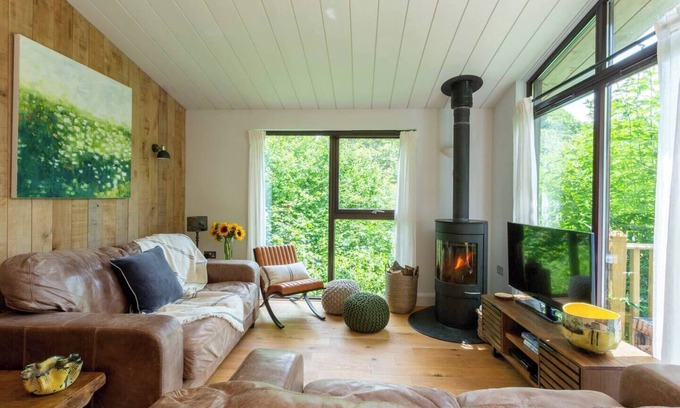 Rural Woodland Lodge with Log Fire & Sunny Deck | Cabin in Slapton