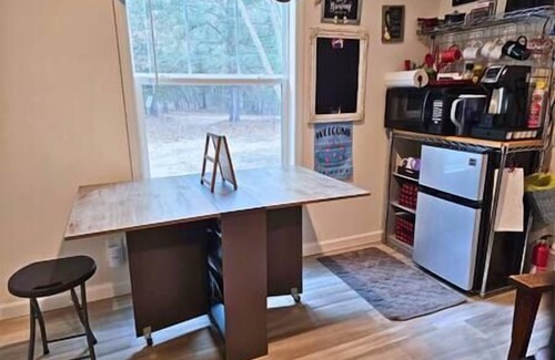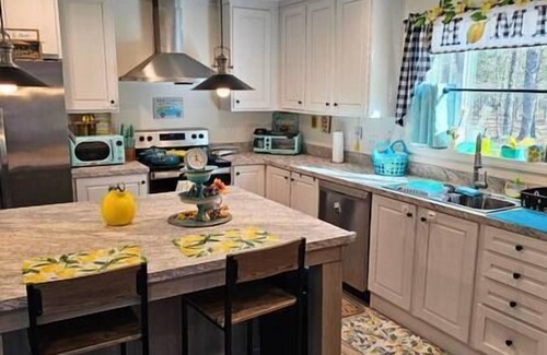 You will enjoy the best of old meets new in this modern farmhouse themed home in the woods. Upcycled furniture combined with new appliances, beds (quality cool gel mattress) and other amenities.