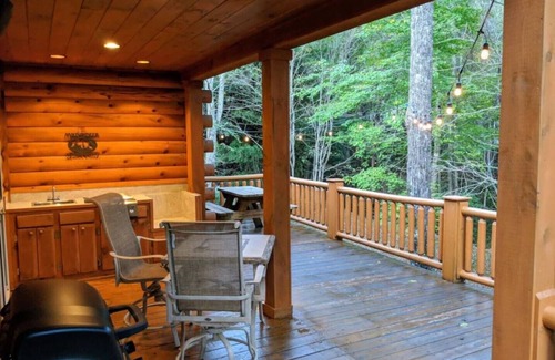 Rushing Bear is a beautiful cabin nestled next to a rushing creek. Relax on the large deck to the sounds of the water, so tranquil ! Enjoy the creekside firepit. Situated on two lots so you have plenty of room for outdoor activities and enjoy the mountain scenery.