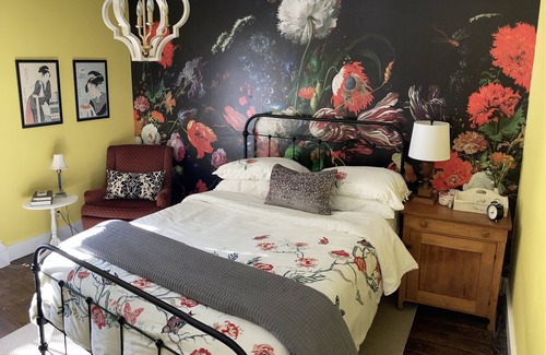 The property can easily accommodate up to 5 guests. All the bedrooms are cozy and unique, while the primary suite offers a spa like bathroom, espresso maker, fireplace and private deck overlooking the gardens.