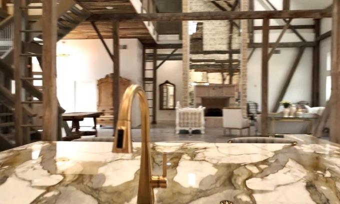 Situated on 18 acres in Round Top, TX, this Historic 1870s Indiana Barn brings the Majestic Oak Beams and marries them with modern touches. This is an amazing mix of old and new design. The stunning 36-foot fireplace with a Mercury Glass Facade is the centerpiece of the magnificent 1,600-square-foot great room. Herringbone tile patterns look amazing with the queen posts of 150 years ago. A great place for a retreat, romantic holiday, reunion, the Round Top Antique shows, or just a quiet night. There are five bedrooms, an office, and a loft that can accommodate up to 18 people. A child's play room complete with slide and ball pit, tops off the unique features. We are sure you will love the fantastic Oak tree or the many large patio areas to relax under/on.