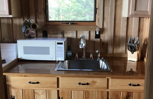 The Beach Cabin is for those wishing to enjoy the outdoors more than the indoors. The cabin has one bedroom with a queen size bed and a pull out couch in the living room. There is room next to the cabin to set up tents if required for additional guests for a maximum of up to six total. The cabin has running water but not a full bathroom. An outhouse is located at the rear of the cabin. The kitchen contains full fridge and stove. There is a BBQ on the deck for outdoor cooking.