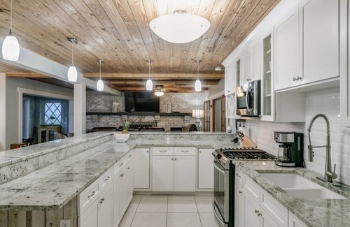 Gourmet Kitchen: The fully equipped kitchen features granite countertops and modern appliances, perfect for preparing celebratory meals or catering services for your special occasion.